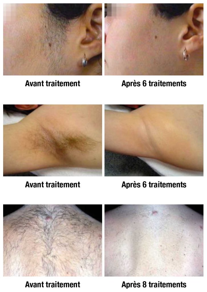 - L’utilisation de la technologie SPT permet un traitement sélectif du follicule pileux et d’allonger le temps entre les traitements.