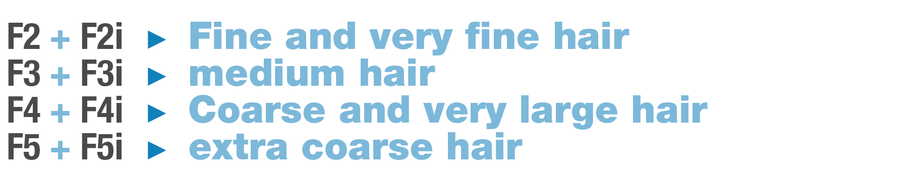 4 SIZES: DIAMETERS ADAPTED TO DIFFERENT SIZES OF FACIAL AND BODY HAIR